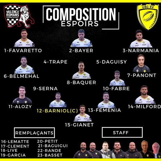 toujours Gianet à l'arrière et Baquer en 8, retour aussi de Levi Milford à l'aile