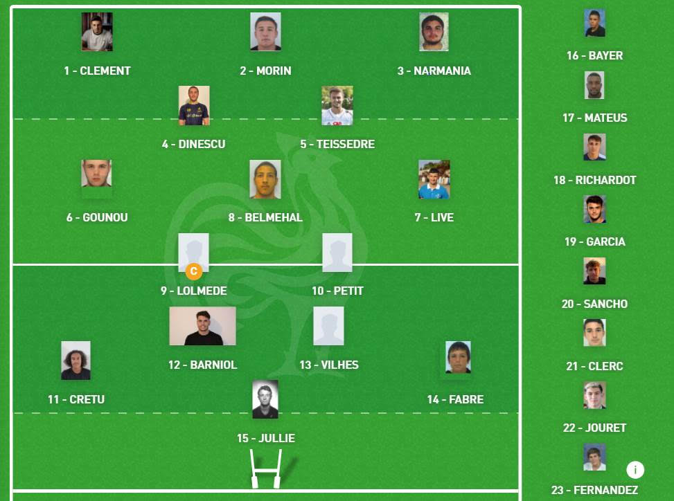 Bonne journée hier pour les jeunes. Victoire des juniors en match de préparation face à Narbonne 22 à 0 et des espoirs face à Albi pour la première journée de championnat Reichel 18 à 12.