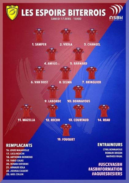 Première titularisation le troisième ligne Colin Fuentes (qui a eut 18 ans au mois de mars) et première feuille de match pour le pilier droit Bruno Vliegen (20 ans en juillet)