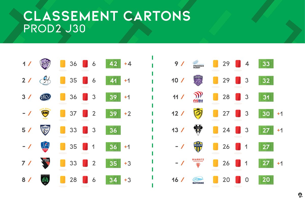 12 ème club pour les carton pas trop mal, seuls 4 club font mieux que nous