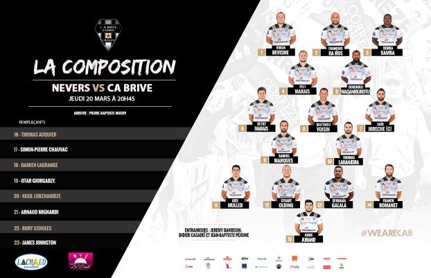 Rugby-ProD2 : Nevers/Brive, les compositions (J25)