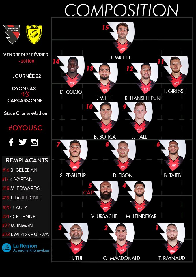 Re: J.22 Oyonnax-USC à Ch Mathon 22/02 20h