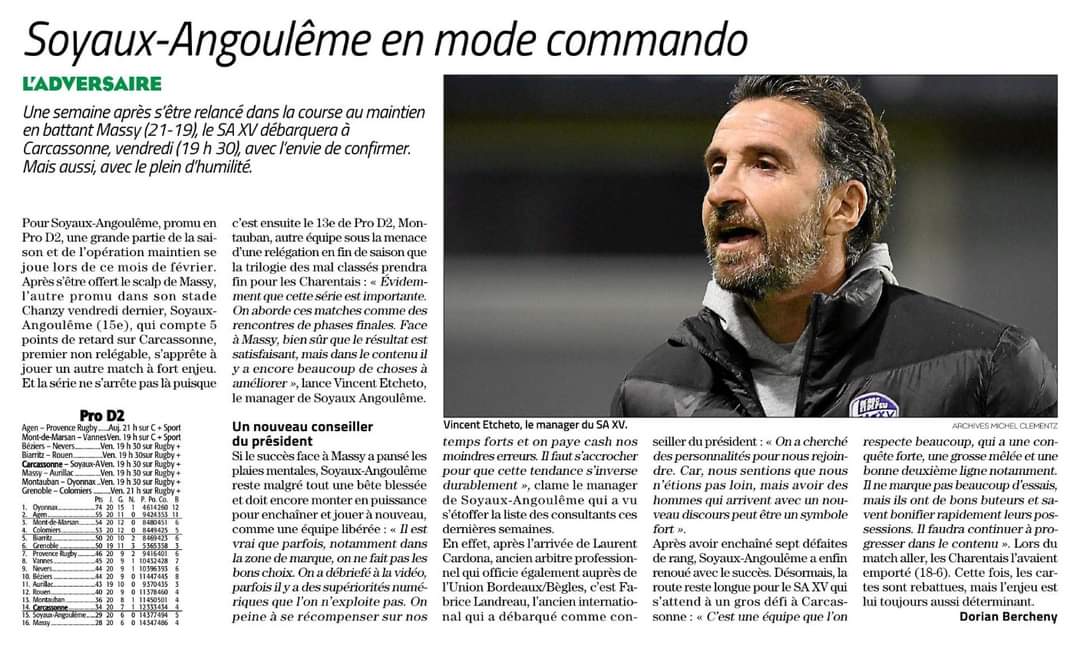 Re: J21 - US Carcassonnaise - SA XV Charente Rugby