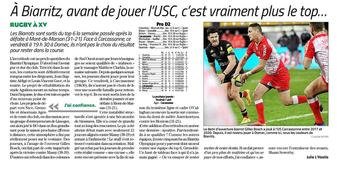 StadeToulousainXV a écrit : 03 avr. 2023, 21:11 Pro D2 : Samuel Marques quitte Carcassonne pour rejoindre Béziers.