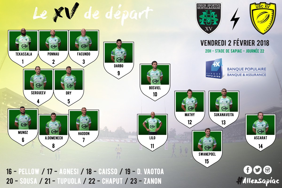 Daniel a écrit : 01 févr. 2018, 17:59LA COMPO CONTRE MONTAUBANPremière ligne : Devisme – Bruté de Rémur – Civilhttp://www.uscarcassonne.com/la-compo-c ... ntauban-2/
