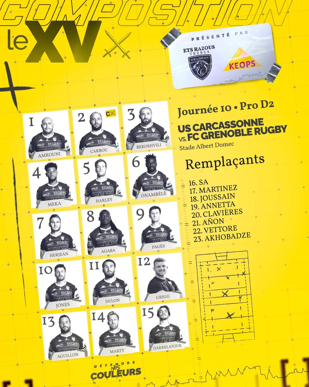 Vendredi 04 novembre, l’US Carcassonne reçoit Grenoble dans le cadre de la J10 de Pro D2. Malheureusement certains joueurs sont indisponibles pour affronter les isérois.