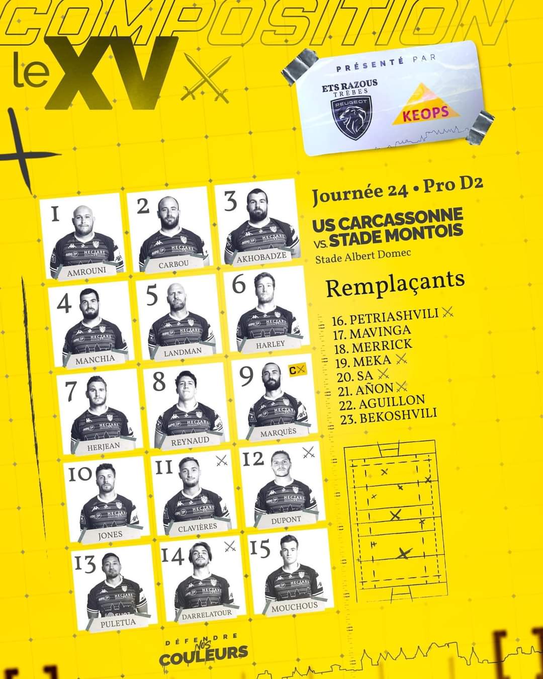 Carcassonne, neuf changements pour recevoir Mont de Marsan