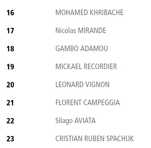 Remplaçants : Jullien – Badiu – Tisseau – Tuinukuafe – Raynaud – Berchesi – Bettencourt – Telefoni