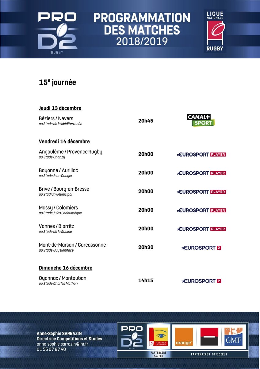 Stade montois /usc diffusé le 14 20h30 sue eurosport 2