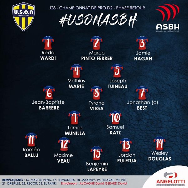 Compo du match Nevers - Béziers, le jeudi 11 avril 2019 à 20h45