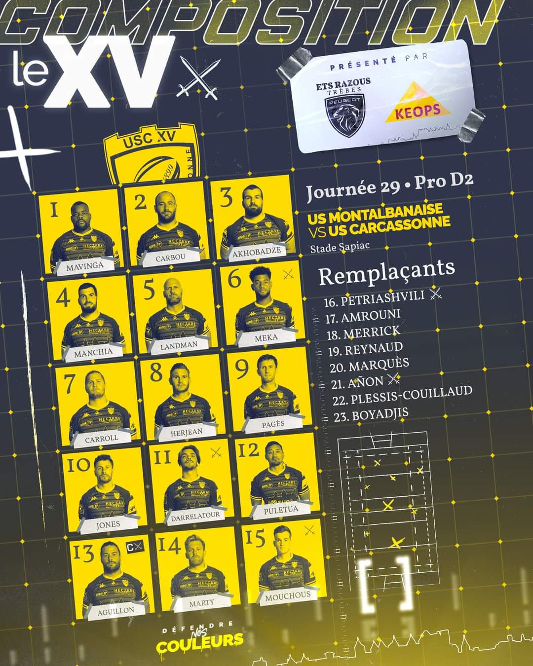 Pro D2: La compo carcassonnaise pour le match de la peur.