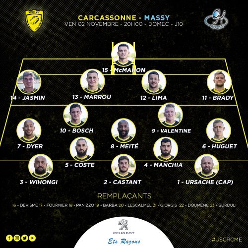 Rugby-ProD2 : Carcassonne/Massy, les compositions