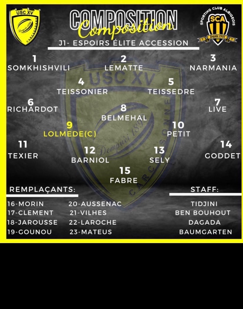 Bonne journée hier pour les jeunes. Victoire des juniors en match de préparation face à Narbonne 22 à 0 et des espoirs face à Albi pour la première journée de championnat Reichel 18 à 12.