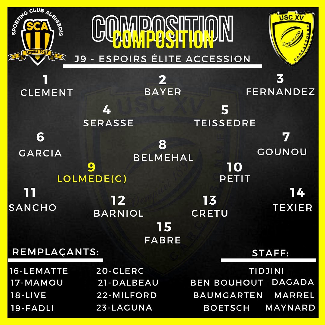Daniel merci de nous tenir au courant du résultatDaniel a écrit : 09 janv. 2021, 12:07ci dessous la compo des espoirs qui se rendent à Albi ce samedi - Match à 15h00