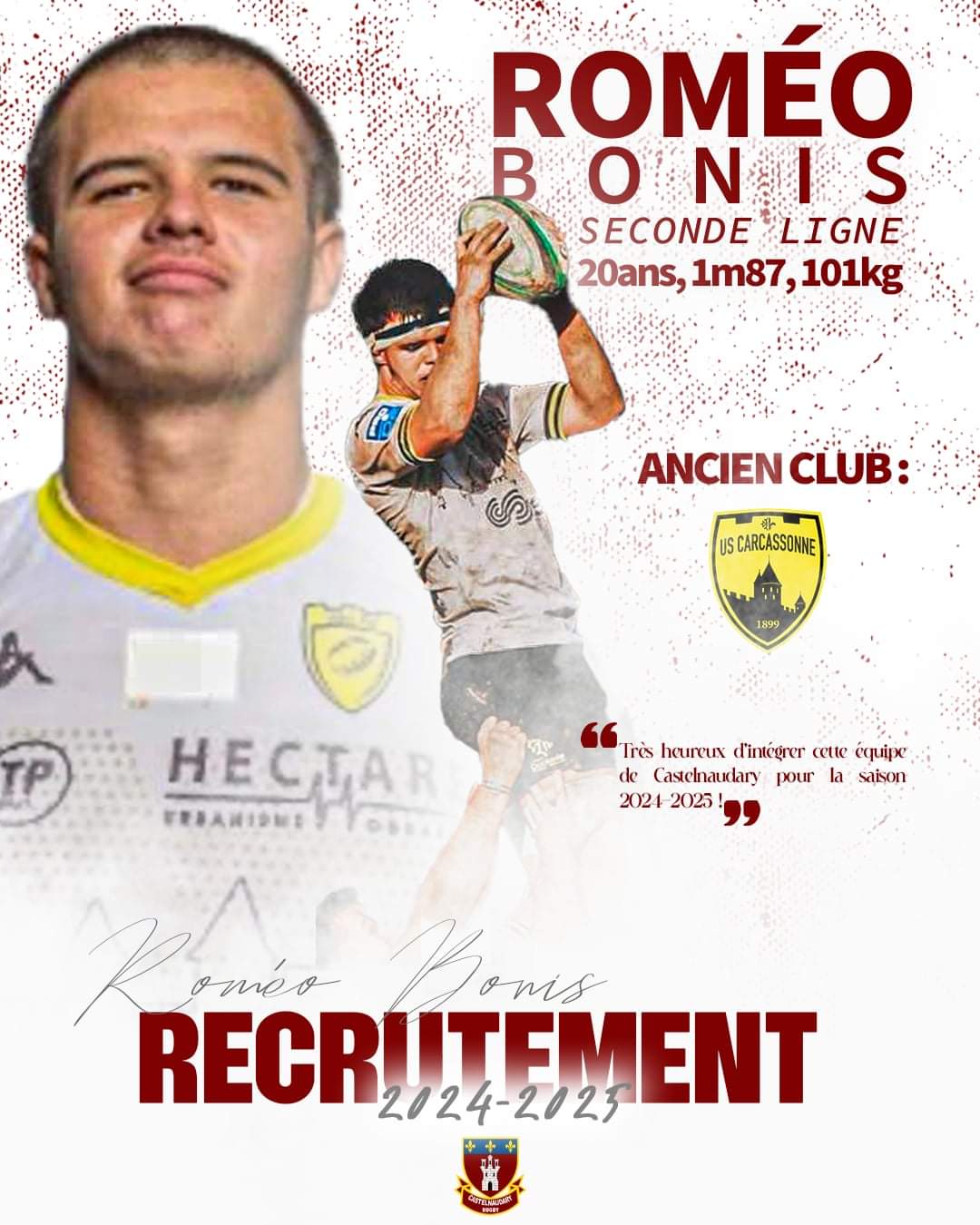 Roméo Bonis, passé par le Stade Toulousain, Pamiers, puis Carcassonne, intégrera le Rugby Olympique Castelnaudary pour la saison 2024/2025 !