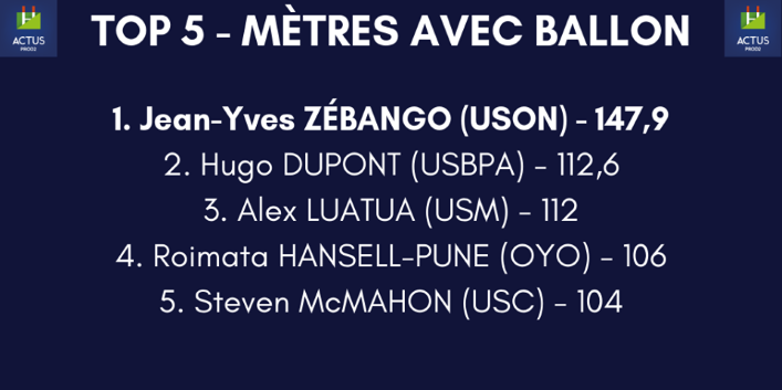 Joueurs ayant parcouru le plus de mètres le ballon en main lors de la dernière journée