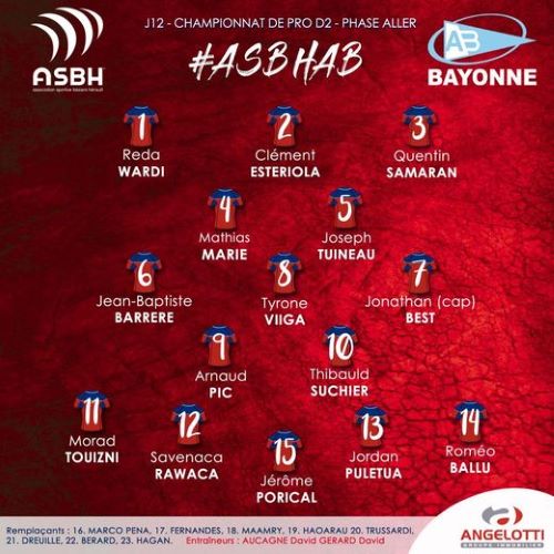 Rugby-ProD2, Béziers / Bayonne : les compositions. (J12)