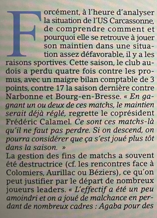 Après une sixième défaite à domicile cette saison, l'US Carcassonne est désormais au pied du mur et plus que jamais en danger en Pro D2. Avec 46 points, les joueurs de la Cité sont 15ème du championnat à 4 points de leur adversaire direct Montauban contre qui ils joueront lors de la prochaine journée. On en parle dans L'Indep Sport en compagnie de Guilhem Richaud.