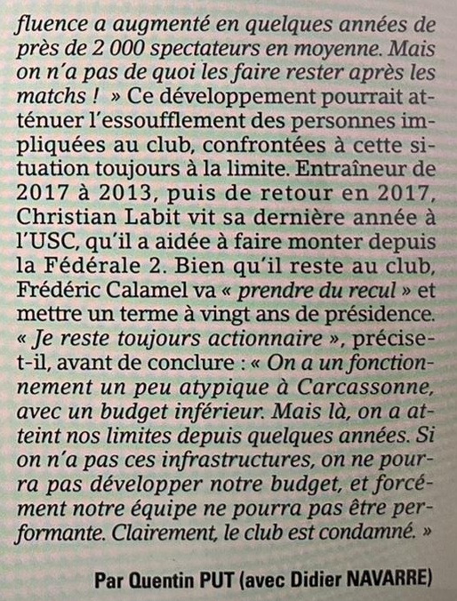 Christian Labit (Carcassonne) : "J'aimerais partir en laissant le club en Pro D2".