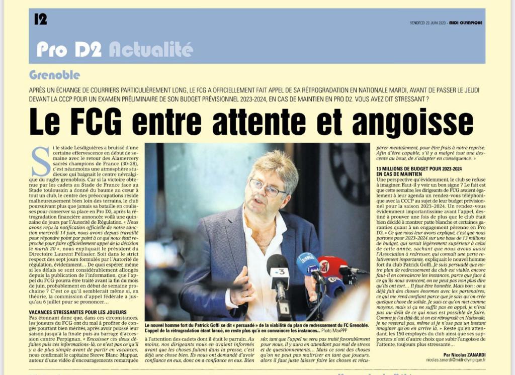 Selon des sources proches du FCG, ils auraient trouvé les 3 millions pour boucher le trou de la saison écoulée.kercroam a écrit : 09 juin 2023, 15:37 FCG, du rêve au cauchemar