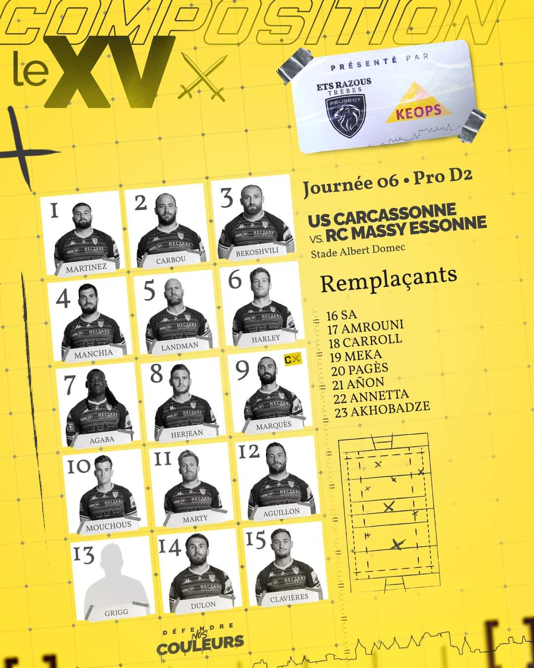 Carcassonne, cinq changements dans le groupe pour recevoir Massy.