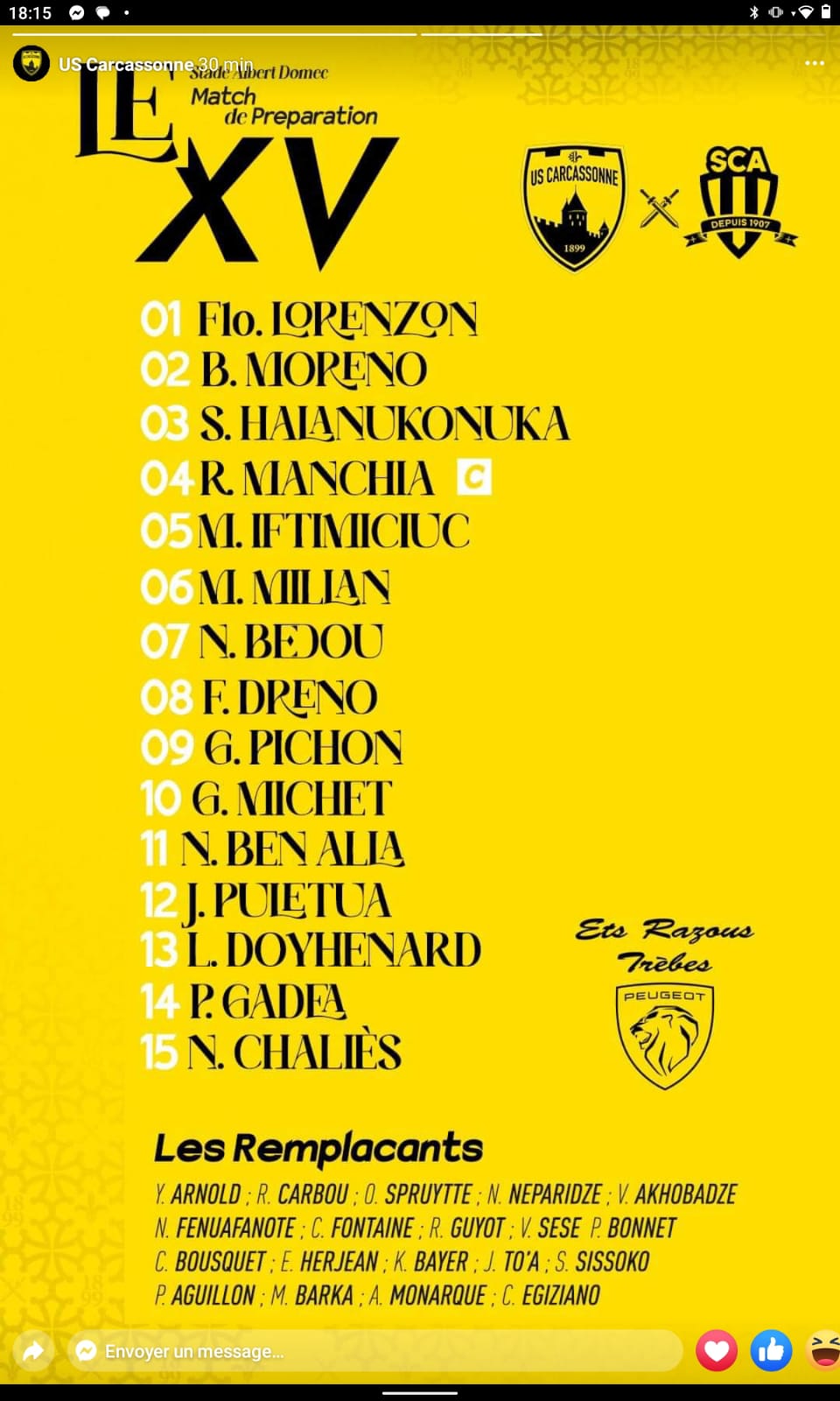 Re: Saison 2024-2025 Match de préparation USC - Sporting Club Albigeois 09/08/2024